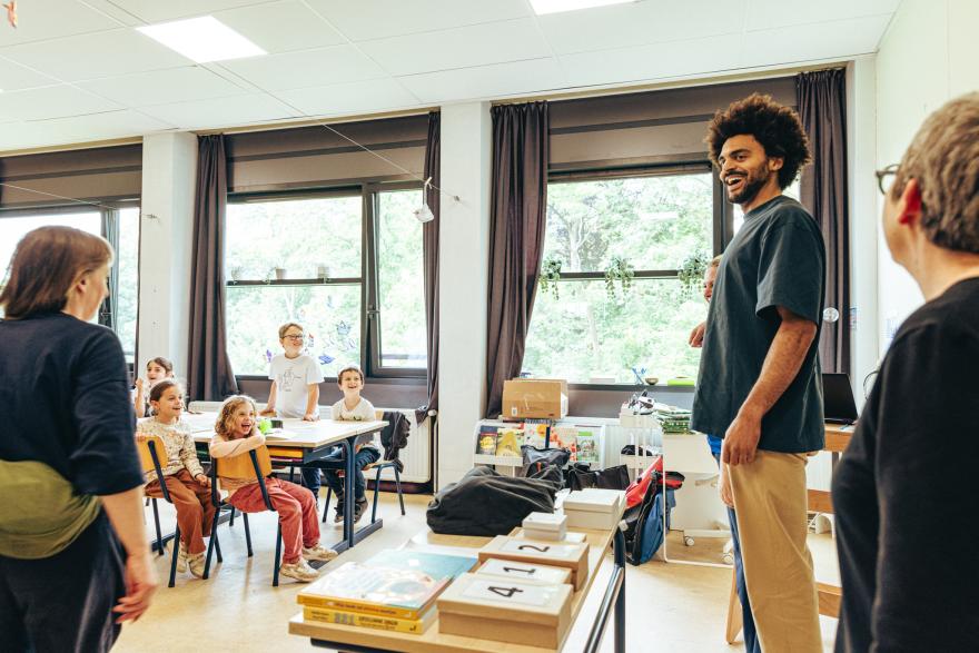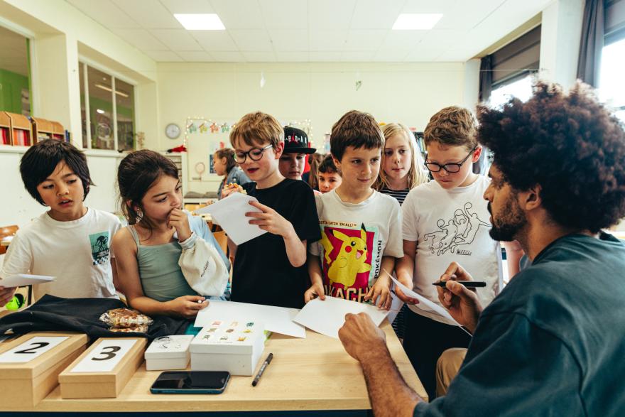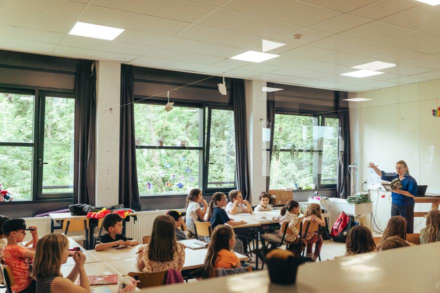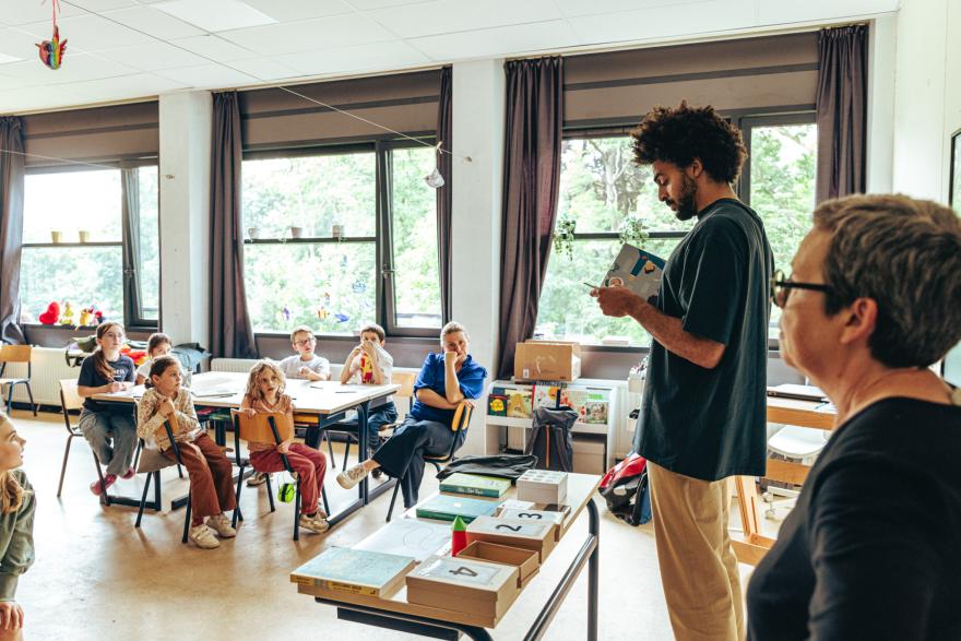 De leerlingen genoten van hun namiddag met Mathilda en Jean-Marc. Mathilda vertelde over haar werk, liet de kinderen een tapir tekenen en haalde leuke weetjes boven. Jean-Marc las voor. Sommige kinderen waren aardig onder de indruk, niet in het minst omdat Jean-Marc, als basketballer, erg groot is én ook nog eens goed kan voorlezen!