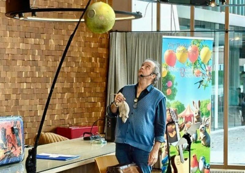 Onderweg brengt hij een prachtig dierenverhaal tot leven, afgewisseld met zang en poëzie.