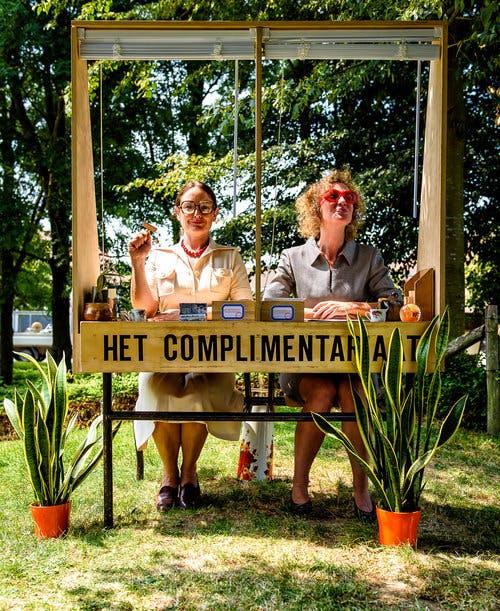 Op woensdag 1 maart – complimentendag en de aftrap van de Jeugdboekenmaand- kan u een persoonlijk geluksmoment komen beleven bij het Complimentariaat; een loket waar u een persoonlijk compliment kan afhalen. Hier wordt serieus bandwerk uitgevoerd. Alles gebeurt met veel precieze en accurate liefde. Complimentenadministratie is namelijk een ernstige aangelegenheid! Ontdek tussen 13 en 17u deze theatrale ondersteuning voor emoties en aanverwanten live in de bib. http://postkaartproducties.com/projecten#/het-complimentariaat/