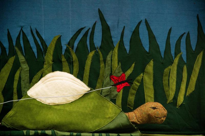 Peter Lein & Ann Vander Roost, sprookjesvertellers van dienst, bouwden een betoverende kamishibaivoorstelling als ode aan de zon.