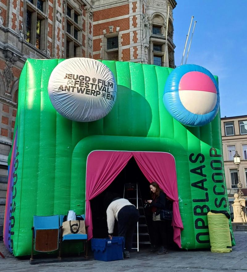 J.E.F ( het jeugdfilmfestival) komt op het Moorkensplein staan met de opblaascinema