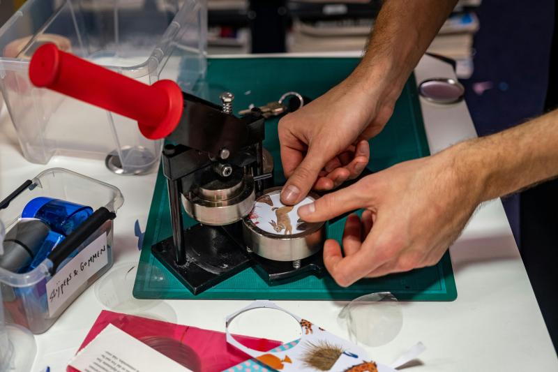 Zelfs als boeken hun beste tijd gehad hebben, kun je er nog 1001 dingen mee doen! Van stukgelezen exemplaren maken we tijdens de Jeugdboekenmaand de gekste buttons. Zo kan je aan iedereen laten zien dat jij graag leest!
