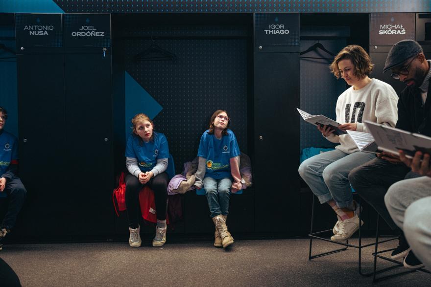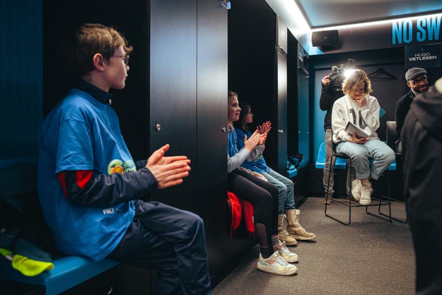 Het vijfde leerjaar van Basisschool Sint-Lodewijk Zandstraat kwamen meevieren. Eerst was er een voorleesmoment in de kleedkamer met Club Brugge-spelers Denis Odoi en Bjorn Meijer en Jeugdboekenmaand-meters Imke Courtois en Mathilda Masters.
