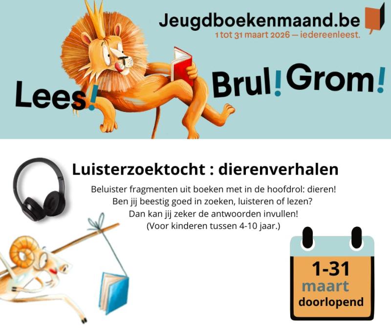 Tijdens jeugdboekenmaand kan je de héle maand op luisterzoektocht gaan in onze bib.