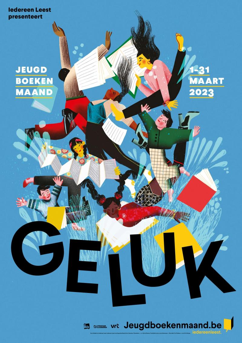 In maart is het opnieuw jeugdboekenmaand, dit jaar draait het helemaal om het thema GELUK. Geluk bestaat uit grote en kleine dingen. Het gaat over jezelf kunnen zijn, mensen hebben die je begrijpen en steunen en over goed in je vel zitten. Energie tanken, blij zijn – en tegelijk weten dat je niet altijd blij kan zijn.
