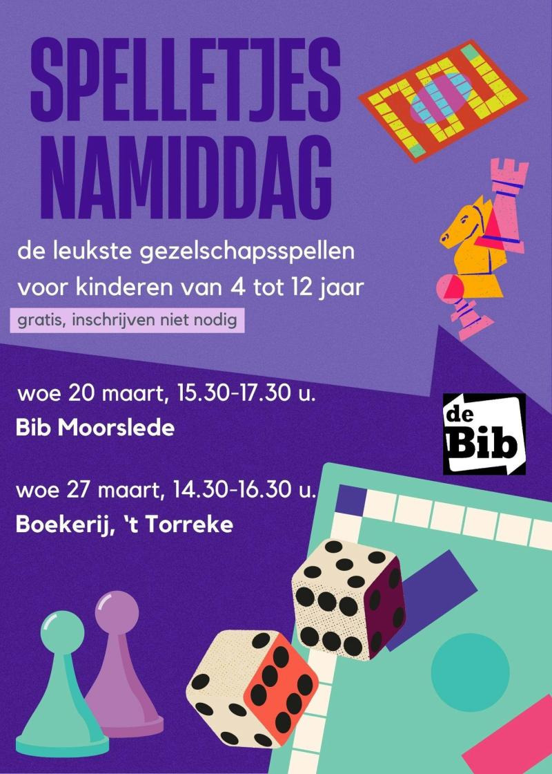 De Jeugdboekenmaand 2024 heeft als thema 'Sport & spel'. De bib organiseert twee maal een spellennamiddag voor kinderen van 4 tot 12 jaar: in Moorslede én in Dadizele. Enkele begeleiders zullen de kinderen helpen om te starten met het spel en verder te begeleiden. Alle kinderen zijn welkom op deze gratis activiteit. Inschrijven is niet nodig en kinderen kunnen doorlopend aansluiten.