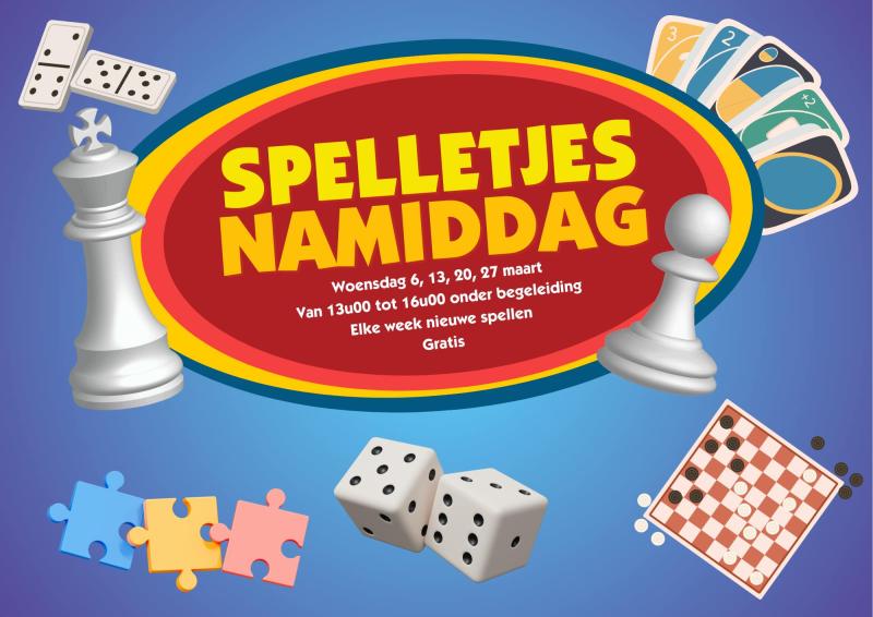Elke woensdagnamiddag tijdens de maand maart maken we in de bib een spelletjestafel met nieuwe spellen die je kan uittesten/spelen met je (groot)ouders, zussen, broers, vrienden, .... Van 13u00 tot 16u00 is er een begeleider van de bib aanwezig.