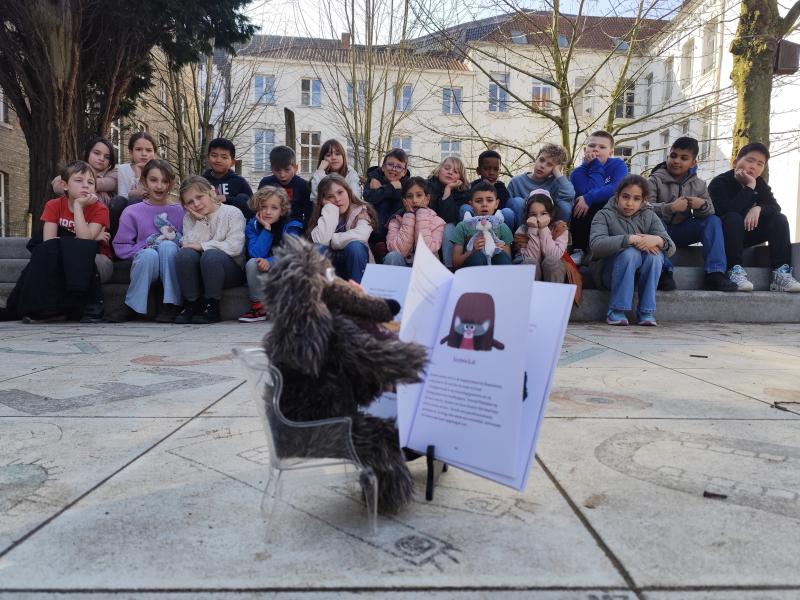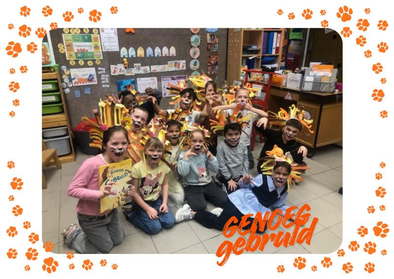 De juf las in de klas het boek : 'Genoeg gebruld'!