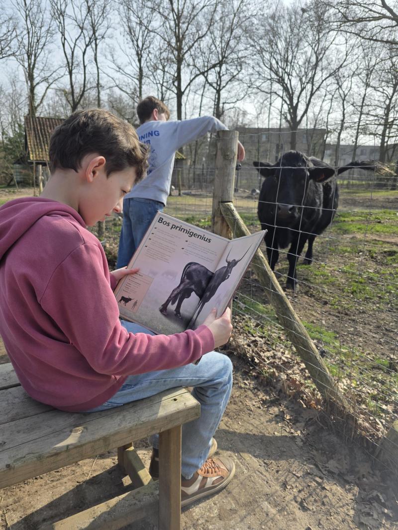 Barrie is een koe op de kinderboerderij van onze school. Hij houdt heel veel van aandacht. Daarom lees ik hem wat informatie voor over zijn vroegere soort. Dat gaat hij vast en zeker graag horen. Groetjes, Gus
