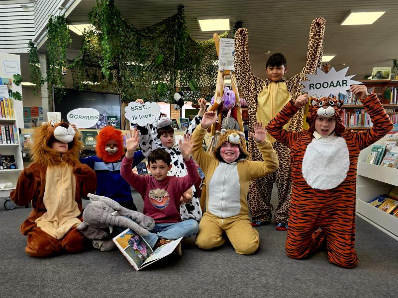 Via een originele binnenkomer (een gat in een olifant) konden we de jeugdafdeling van onze bib betreden.