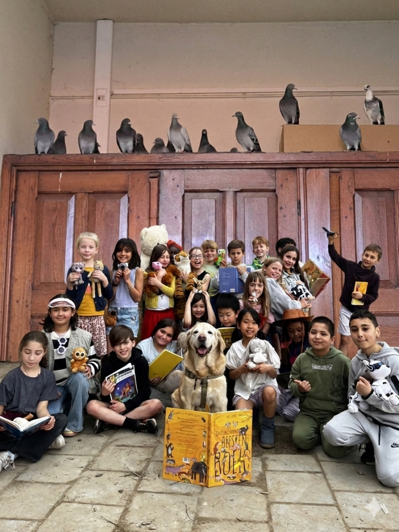 Oh ja, nog vergeten... Door een gat in ons dak op school konden we uitzonderlijk ook samen met de duiven lezen in onze gang.