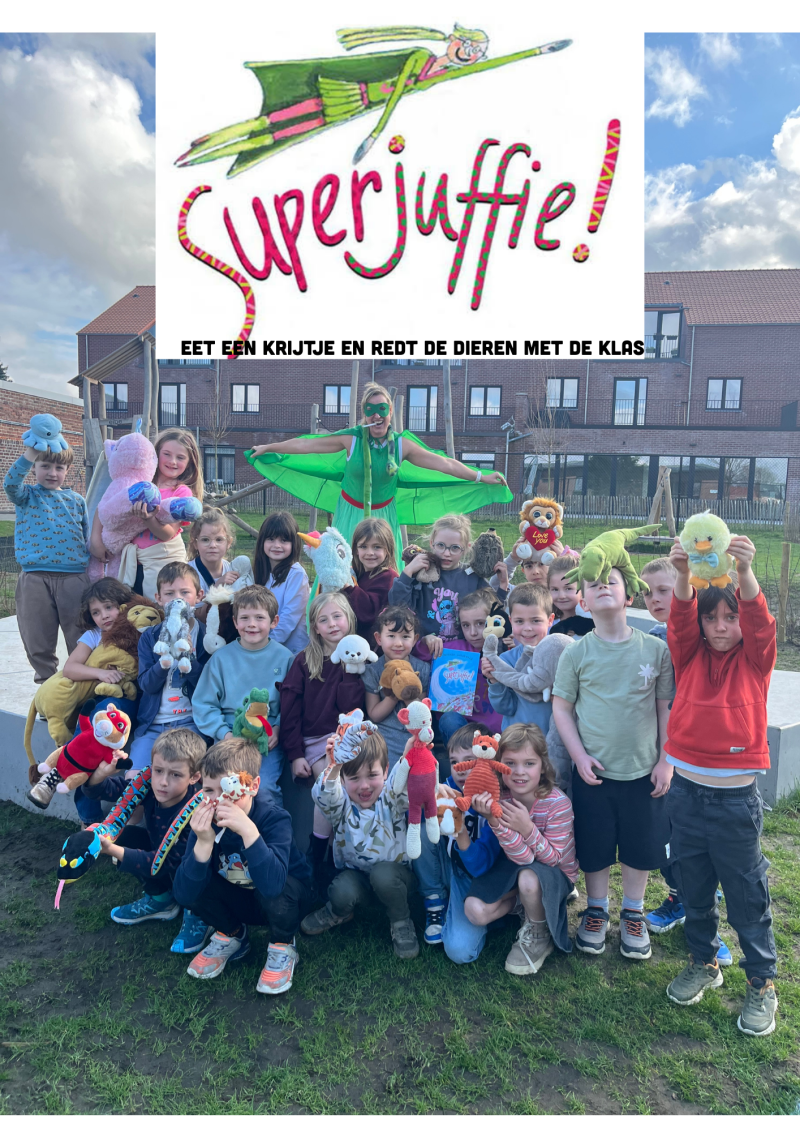 Ze hoort dieren roepen om hulp en eet dan een krijtje. Dan verandert ze in superjuffie en kan de dieren gaan redden.