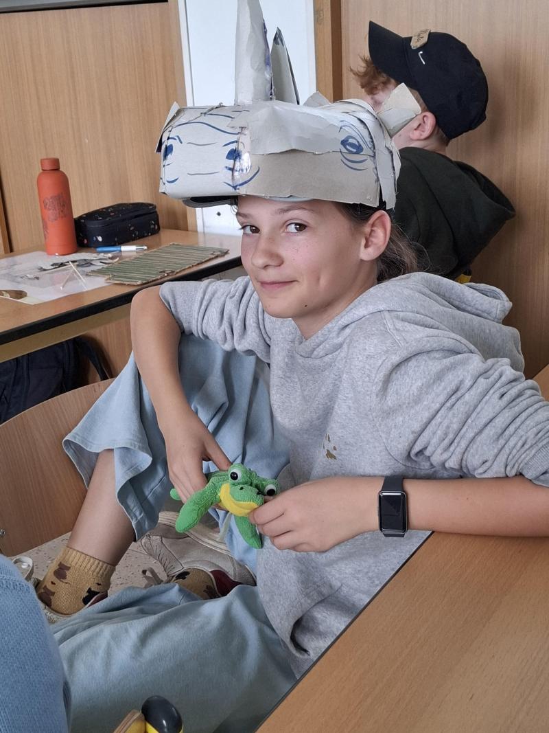 Dit is Rani uit het eerste middelbaar. Rani is een witte neushoorn. Pardon. Rani kroop in de huid van een witte neushoorn. Rani heeft dyslexie, maar smeet zich toch volledig om voor te lezen uit het boek 'Een kleine geschiedenis van de mensheid door dierenogen'. Rani werd de neushoorn. Rani doet ook kunst. Het hoofddeksel maakte ze zelf. Rani heeft dyslexie. So what? Rani kan voorlezen als de beste en Rani doet kunst. We love Rani.