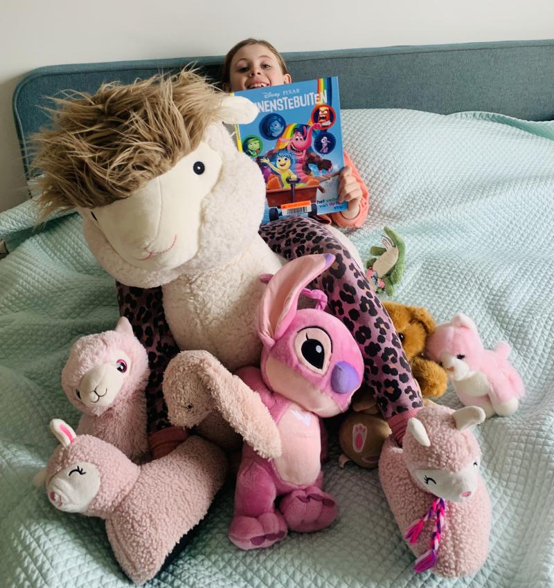 Ik ben Charlie en ik zit in de lamaklas, vandaar dat ik voorlees aan mijn lama’s én al mijn andere knuffels :)