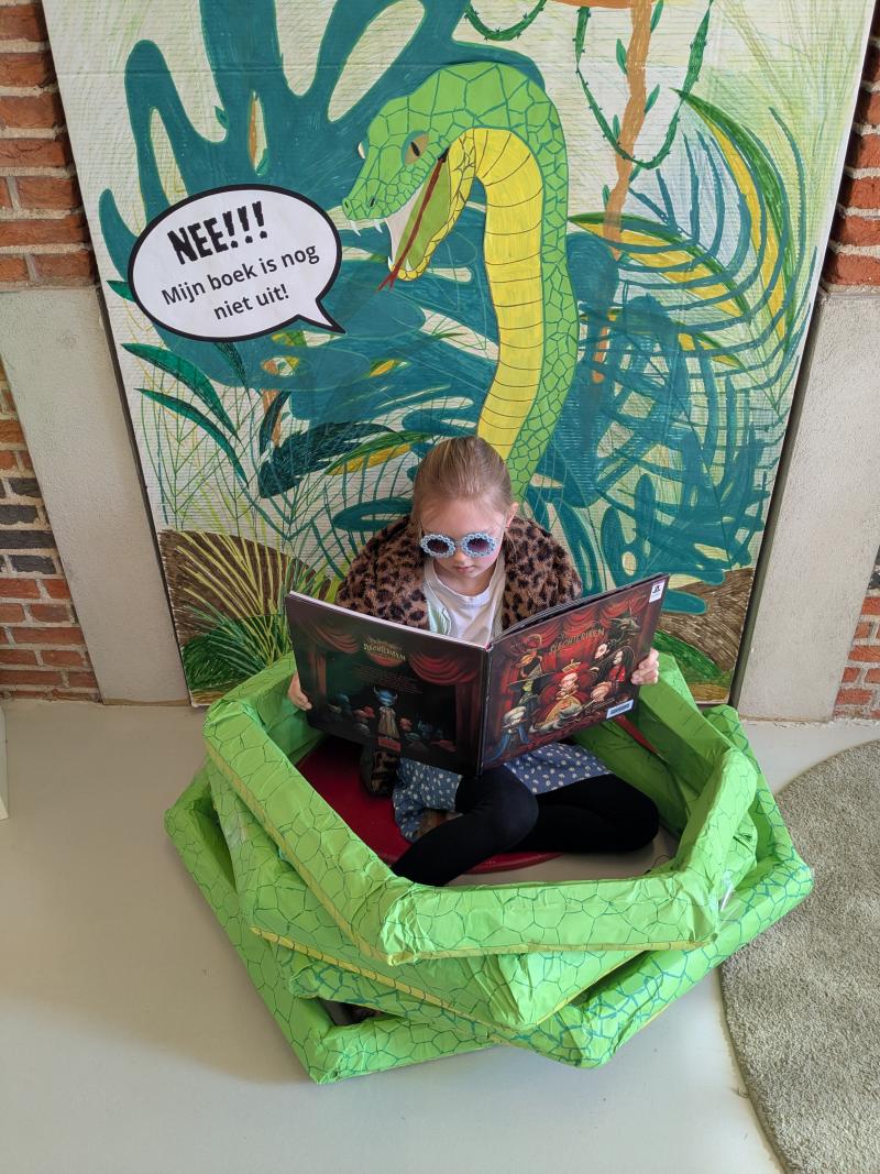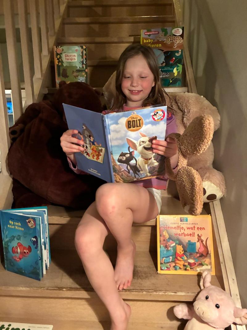 Niets of niemand kan haar storen, want Fien wilt gewoon rustig haar boekje uitlezen in de bib.