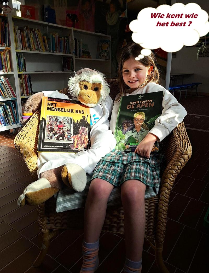 Als bibliothecaris van onze schoolbib wilde ik absoluut meedoen aan de wedstrijd. Ik vroeg aan de kleuterjuf naast mijn bib of ik even "een kindje mocht lenen" voor een fotoshoot.