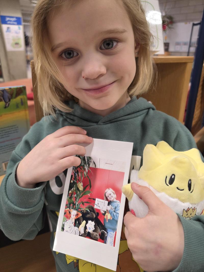 Lily heeft de fotozoektocht in de bib tot een goed einde gebracht!