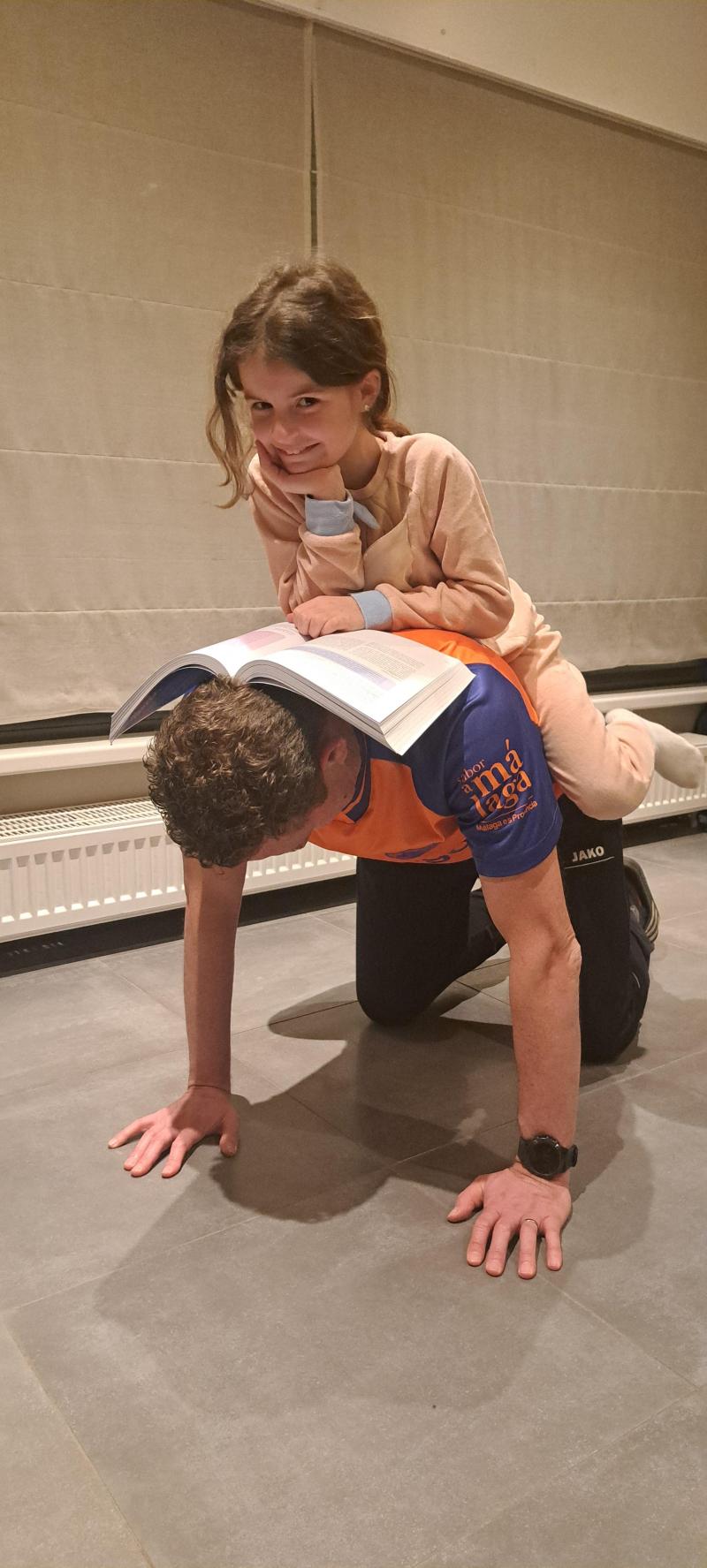 Leonie die bij gebrek aan een huisdier een boek leest op papa de Pony... ;-)