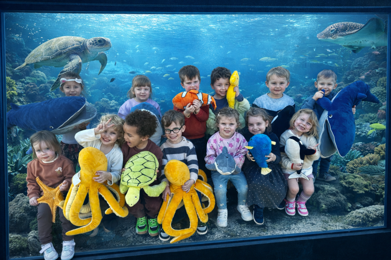 De allerkleinste van de school hebben twee weken gewerkt in de klas over onderwaterwereld. Verschillende boeken en dieren onder water kwamen die weken aanbod.
