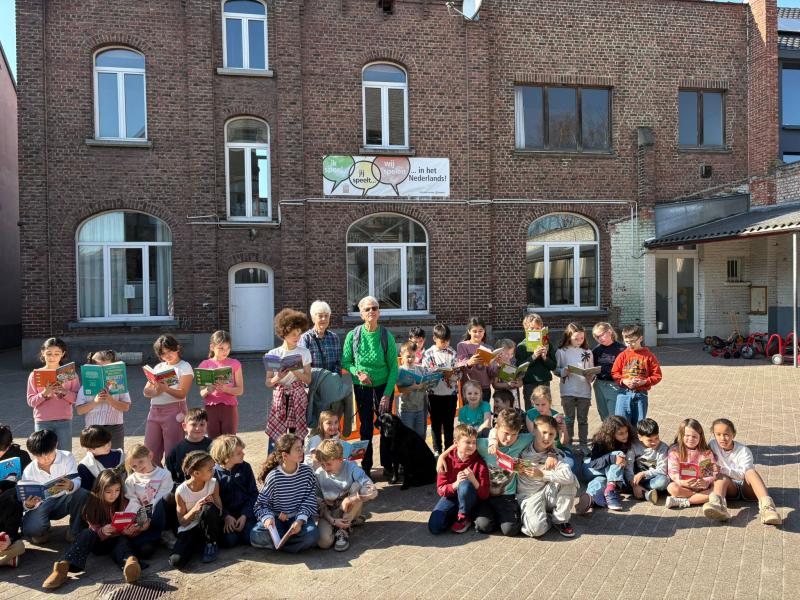 Samen met Greta (die blind is en haar blindegeleidehond meenam naar de klas binnen ons thema van " Anders zijn en elkaar aanvaarden") maakten we een foto met de verhalen die we lezen.