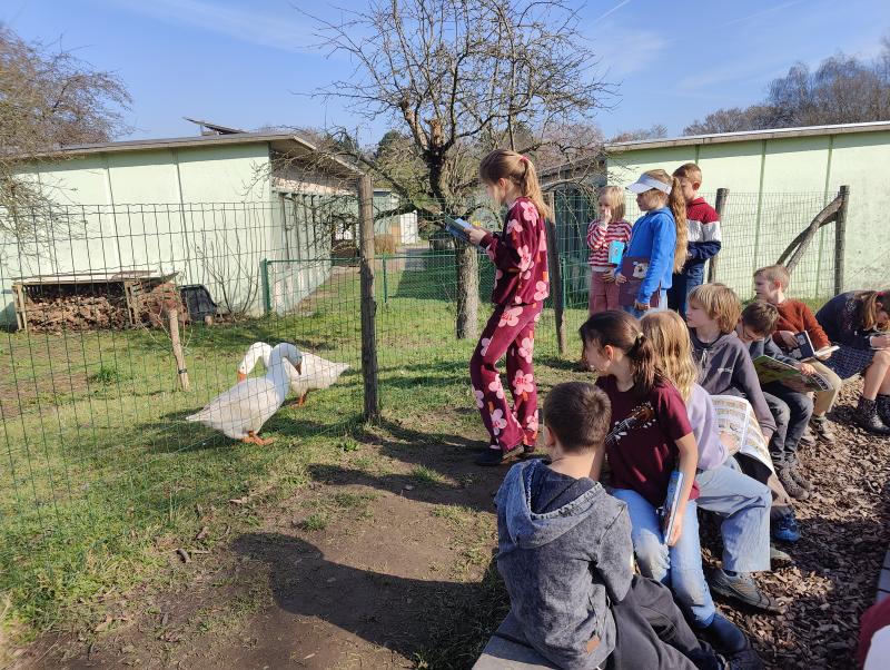 Wij genieten enorm graag van het buiten leren en dus mag lezen daar ook niet ontbreken bij onze ganzen.