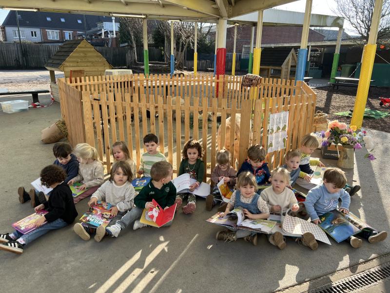 Onze jongste kleuters van de eeckberger, genieten van hun lievelingsboek bij de dieren.