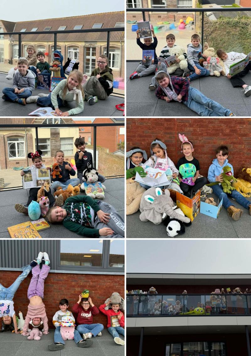 De leerlingen van klas 4 van GO! De Notelaar zijn echte boekenwurmen! In deze collage zie je hoe zij samen met hun trouwe huisdieren en lieve knuffeldieren helemaal opgaan in de mooiste verhalen. Zij maken van elk (voor)leesmoment een warm en gezellig avontuur. Samen lezen, samen beleven. Dat is waar zij voor gaan! Met veel enthousiasme dingen ze dan ook graag mee naar mooie prijzen.