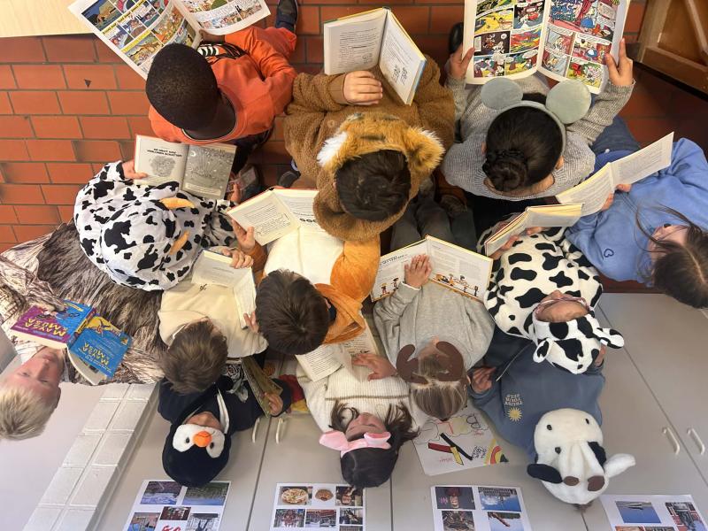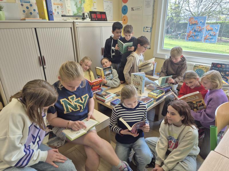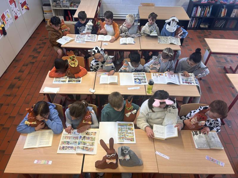 Op onze school staan er tal van leuke opdrachten in de kijker: voorlezers in onze klassen, bezoekjes aan de bibliotheek, dieren zoeken in onze verhalen, meter-en peterlezen, voorlezen aan onze huisdieren en knuffels, ...