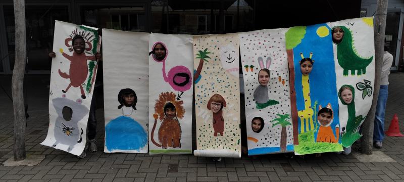 Met onze klas maakten we een fotomuur van verschillende dieren.