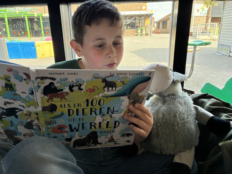 Op vrijdag lezen we altijd boeken in de klas, maar deze keer was het dus een echte beestenboel!