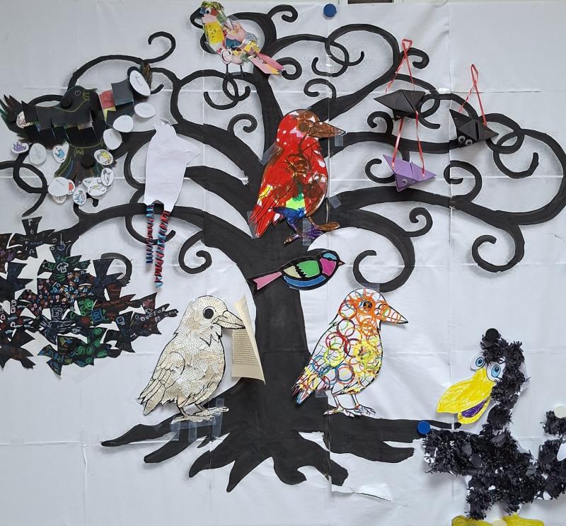 Tijdens de Jeugdboekenmaand groeide aan onze schoolpoort een boom vol kraaien. Elke kraai staat voor een klas, samen vormen ze één geheel. Net zoals wij: allemaal anders, maar toch verbonden.