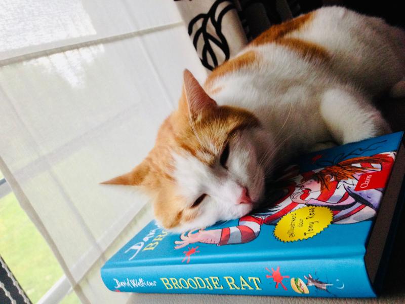 Yoshi de kat heeft zijn favoriete boek ontdekt: Broodje Rat van David Walliams…. Maar hij wordt zooooooo moe van dat lezen en droomt nu dan maar verder van dat Broodje Rat…