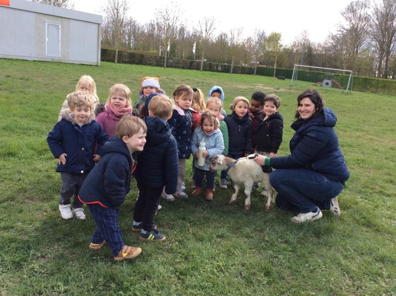 Wij zijn de lammetjesklas: we willen spelen, lachen en huppelen.