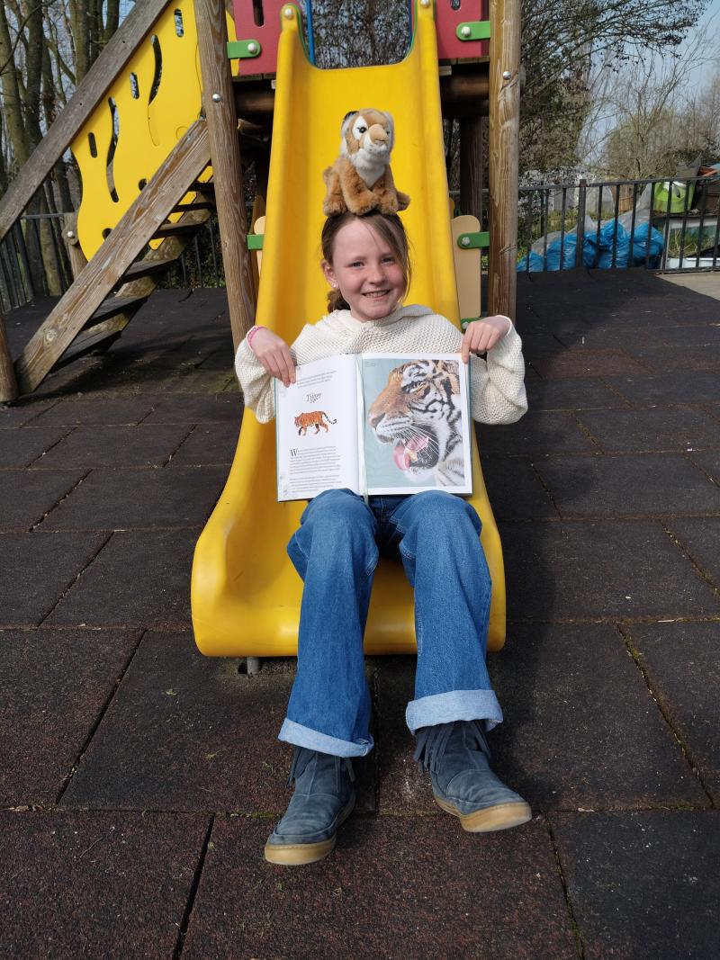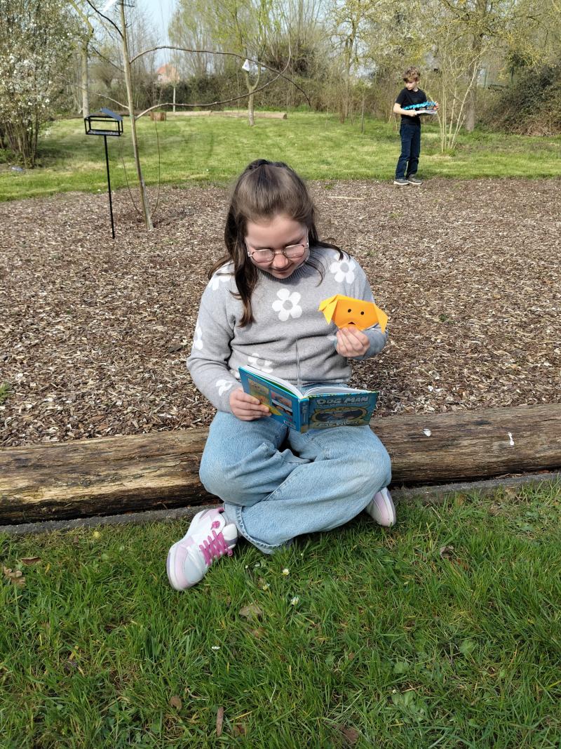 Mijn favoriete leesplek? Buiten, in het groen! Daar komen verhalen over dieren echt tot leven. 🌿