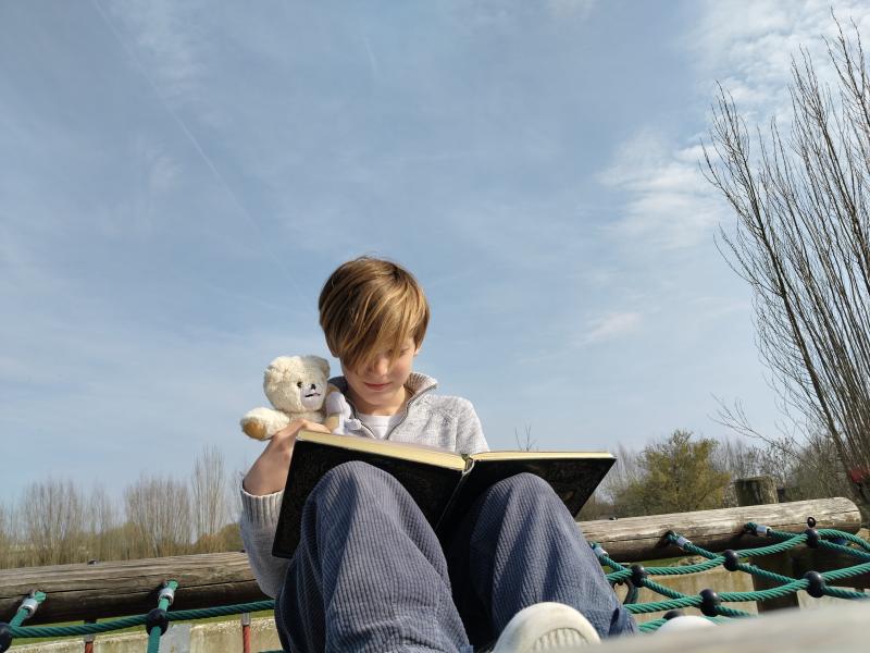 Ik lees, ik droom en ik ontdek. Buiten lezen brengt mij dicht bij de dieren uit mijn boek. 🐦