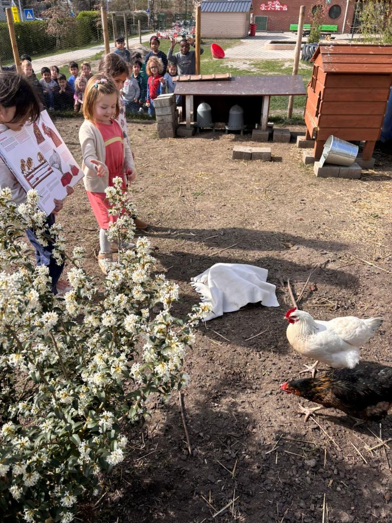 We lazen in HET GROTE KIPPENBOEK dat kippen dingen kunnen terugvinden. Dat ze eigenlijk best slim zijn. Samen met de klas gingen we dit uittesten bij onze schoolkippen door verstoppertje te spelen met onze klaspop Vos.