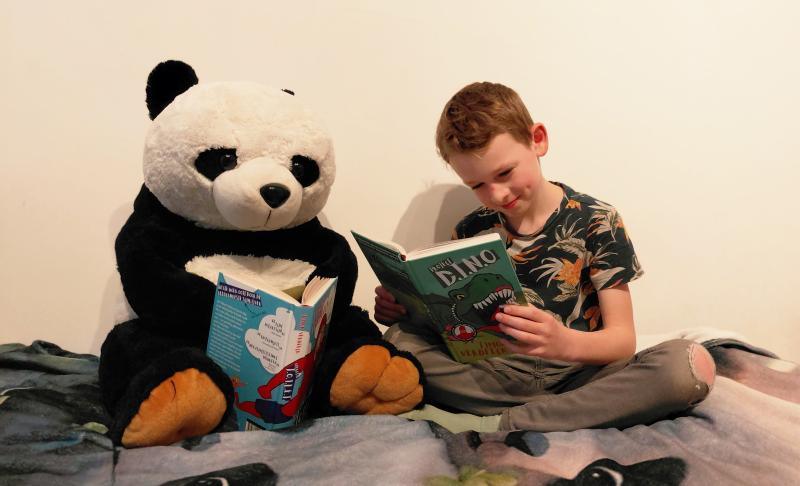 Juul en panda lezen graag de boeken van Timon Verbeeck en liggen (meermaals) strijk van het lachen