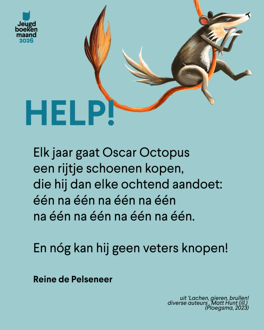 We selecteerden zes gedichten rond het thema ‘dieren’, van o.a. Edward van de Vendel, Reine de Pelseneer en Riet Wille. Je kan de gedichten vrij gebruiken tijdens deze Jeugdboekenmaand!