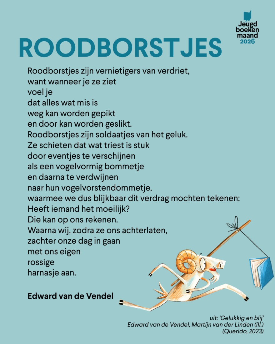 We voorzien ze in twee formaten: jpegs (formaat 4:5) om te gebruiken op socials en in nieuwsbrieven en drukklare pdf's (A4), zodat je de gedichten ook kan afdrukken en ophangen in de school, bib, boekhandel of bij je thuis. Met dank aan de uitgevers voor de toestemming! De downloads vind je onderaan.